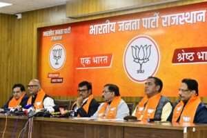 प्रेसवार्ता में भाजपा महामंत्री कैलाश मेघवाल, प्रदेश प्रवक्ता एवं विधायक कुलदीप धनकड़ तथा प्रदेश मीडिया प्रभारी प्रमोद वशिष्ठ भी उपस्थित रहे।