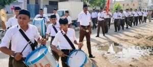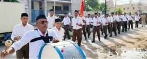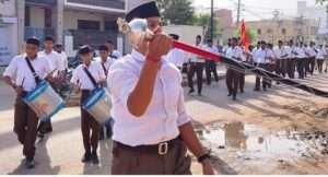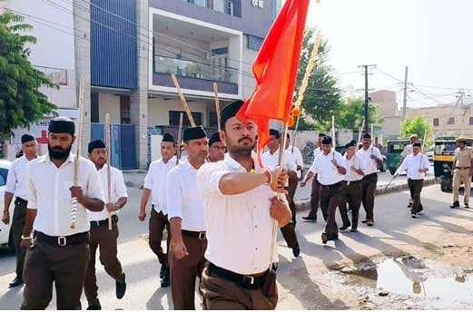 बीकानेर। (विजय कपूर) — राष्ट्रीय स्वयंसेवक संघ, मार्कण्डेय नगर की अम्बेडकर बस्ती शाखा ने शनिवार को जस्सूसर गेट के बाहर मालियों के मोहल्ले में नृसिंह मंदिर के पास विजय दशमी उत्सव उल्लास और उमंग के साथ मनाया। कार्यक्रम में स्वयंसेवक संघ के संस्थापकों, भगवान श्रीराम और शस्त्र का पूजन किया गया। काव्य गीत एवं अवतरण भाव गीत गाए गए, भगवा ध्वज को प्रणाम कर प्रार्थना की गई और पथ संचलन निकाला गया।
