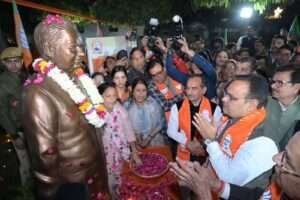 भारत रत्न स्वर्गीय अटल बिहारी वाजपेयी जी की जन्म जयंती की पूर्व संध्या पर भाजपा प्रदेश कार्यालय में दीपदान कार्यक्रम का आयोजन किया गया। इस अवसर पर मुख्यमंत्री भजनलाल शर्मा एवं भाजपा प्रदेशाध्यक्ष मदन राठौड़ ने अटल जी को पुष्पांजलि अर्पित कर श्रद्धा सुमन अर्पित किए।