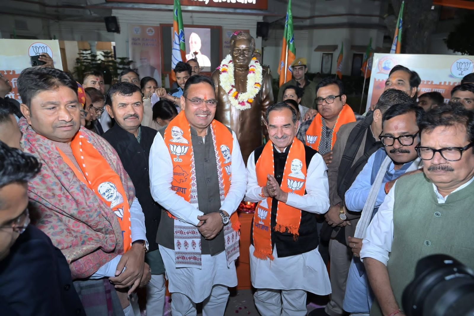 भारत रत्न स्वर्गीय अटल बिहारी वाजपेयी जी की जन्म जयंती की पूर्व संध्या पर भाजपा प्रदेश कार्यालय में दीपदान कार्यक्रम का आयोजन किया गया। इस अवसर पर मुख्यमंत्री भजनलाल शर्मा एवं भाजपा प्रदेशाध्यक्ष मदन राठौड़ ने अटल जी को पुष्पांजलि अर्पित कर श्रद्धा सुमन अर्पित किए।