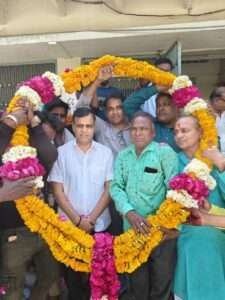 21 किलो फूलों की माला और आतिशबाजी के साथ कार्यकर्ताओं ने किया अभिनंदन