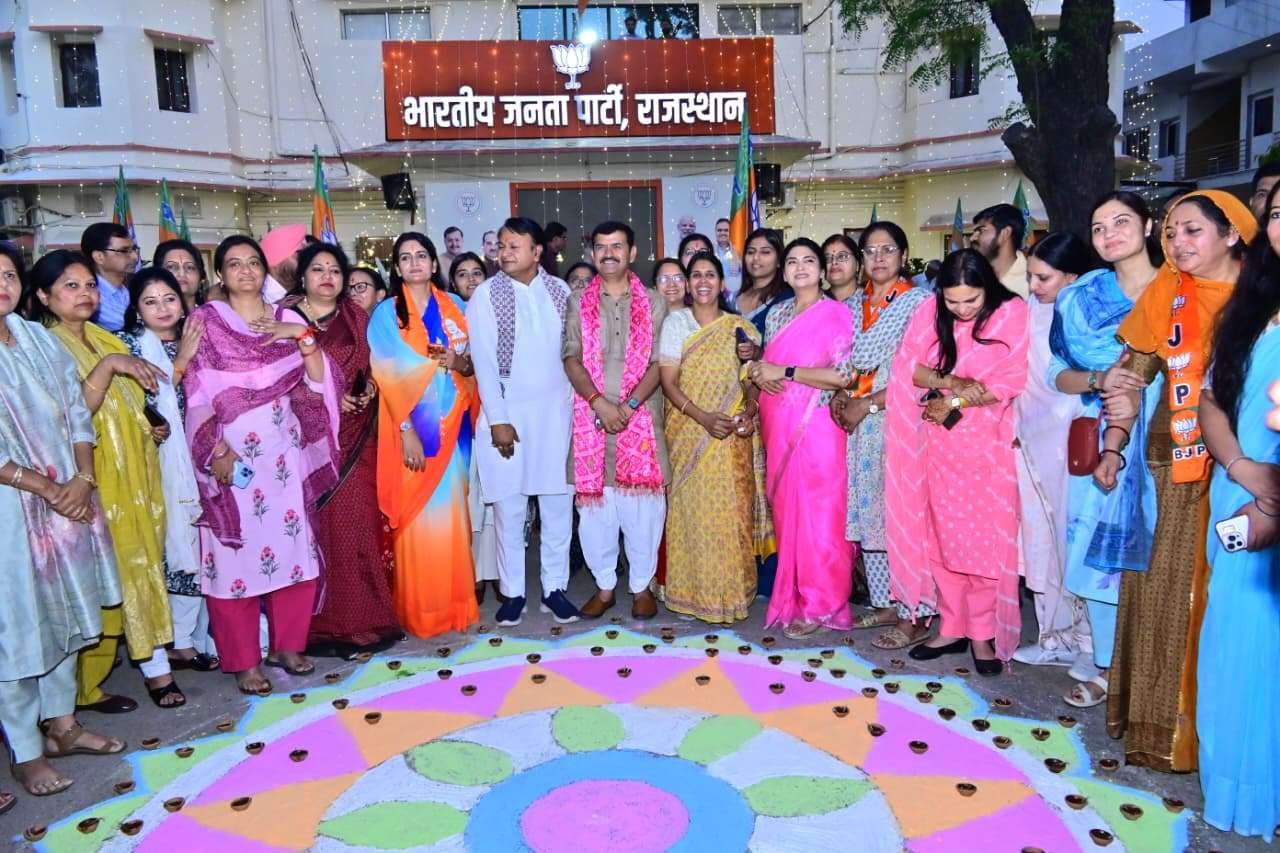 जयपुर | (रूपनारायण सांवरिया) भारतीय जनता पार्टी के स्थापना दिवस की पूर्व संध्या पर जयपुर स्थित प्रदेश कार्यालय में दीपोत्सव, आकर्षक रोशनी और भव्य आतिशबाजी का आयोजन किया गया। इस अवसर पर महिला मोर्चा द्वारा रंगोली सजाई गई तथा पूरे परिसर को दीपों से रोशन किया गया।