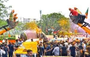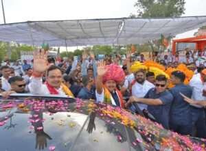 राष्ट्रीय अध्यक्ष के स्वागत में आयोजित विशाल रोड शो में भाजपा युवा मोर्चा के हजारों कार्यकर्ता भगवा साफा पहनकर दुपहिया वाहनों पर उत्साहपूर्वक शामिल हुए। पूरे मार्ग में “जय श्री राम” और पार्टी के समर्थन में नारों से माहौल पूरी तरह भगवामय नजर आया। विभिन्न स्थानों पर महिला मोर्चा, एसटी-एससी मोर्चा, अल्पसंख्यक मोर्चा सहित अन्य प्रकोष्ठों के कार्यकर्ताओं ने भी राष्ट्रीय अध्यक्ष का स्वागत किया।