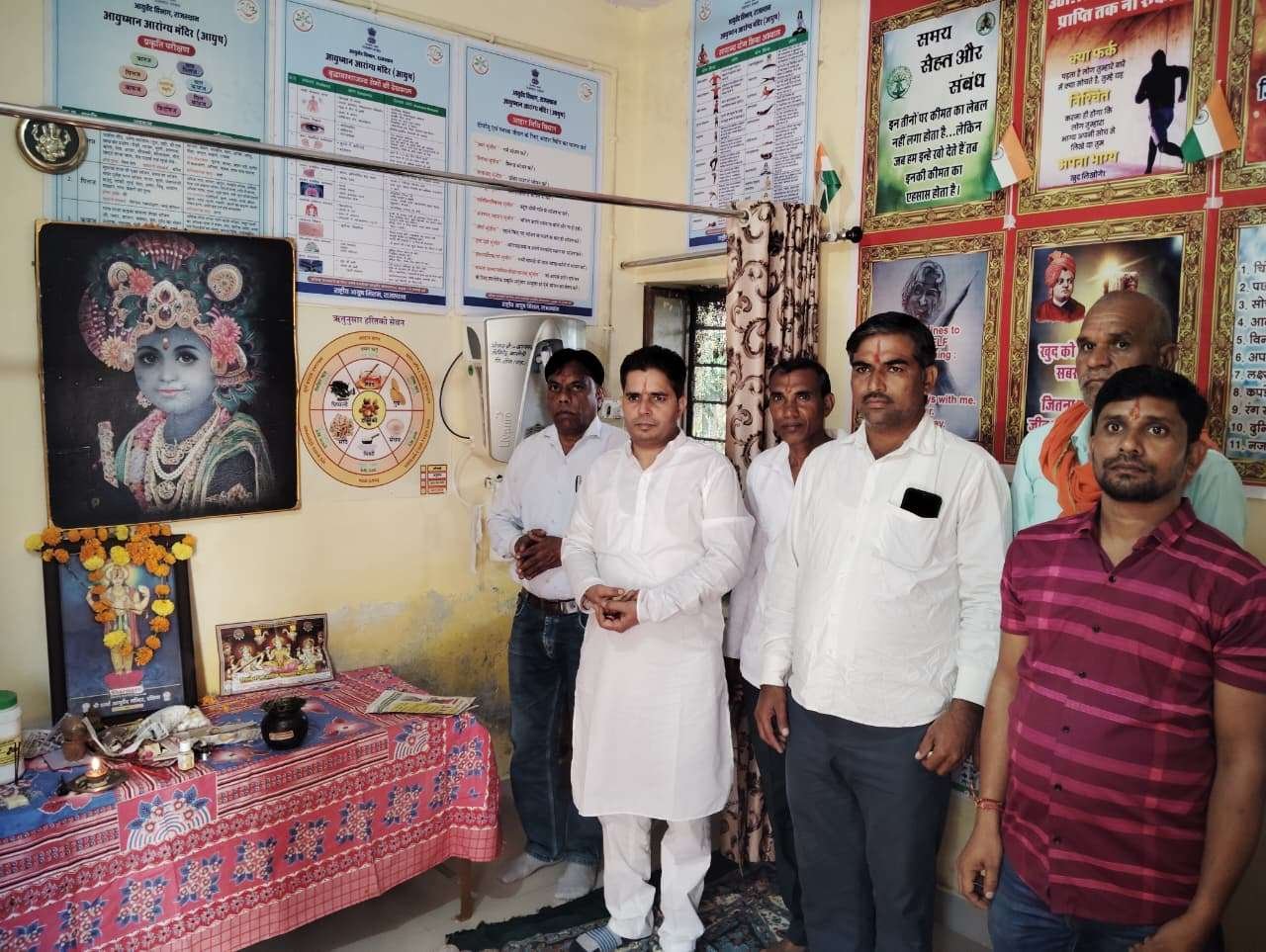 पूजा-अर्चना पंडित छीतर लाल द्वारा सम्पन्न करवाई गई। कार्यक्रम में कम्पाउंडर राकेश गुर्जर, राम गोयल, रामस्वरूप सैनी, गोपाल सैनी, बालकिशन शर्मा, किशनसिंह गौड़, ओमप्रकाश, मनराज, केशव, किस्मत भारती, राजदेवी सहित अनेक गणमान्य नागरिक मौजूद रहे।