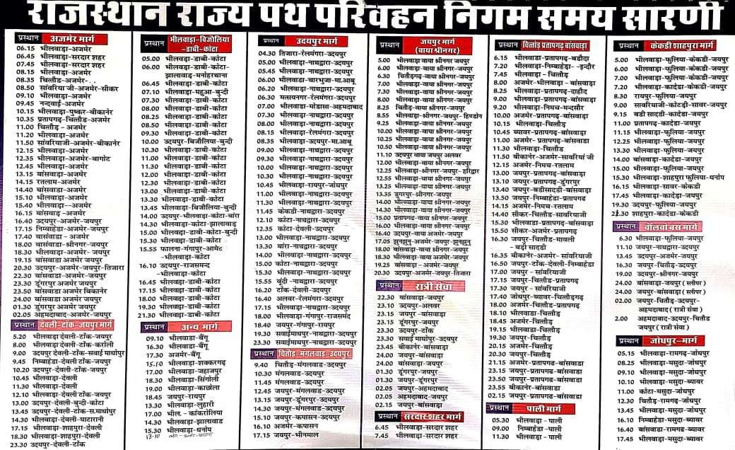 भीलवाड़ा जिले में रोडवेज से सफर करने वाले यात्रियों के लिए खुशखबरी है। अब यात्रियों को विभिन्न रूटों पर बसों की समय सारणी (चार्ट) उपलब्ध कराया गया है, जिससे यात्रा को और अधिक सुविधाजनक बनाया जा सकेगा।