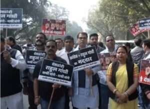 नई दिल्ली। इसे कहते हैं जैसे को तैसा, दो दिन पहले कांग्रेस कार्यकर्ताओं ने AI समिट में हंगामा करके प्रदर्शन किया था , कांग्रेस कार्यकर्ताओं के इस विरोध प्रदर्शन की देशभर में निंदा हो रही है किसी ने भी उनका कार्यक्रम स्थल पर जाकर इस तरह से भौंडा प्रदर्शन करने को उचित नहीं माना । तो भाजपा कार्यकर्ता भला कहां चुप रहने वाले थे। जयपुर में गुरुवार को भाजपा युवा मोर्चा के प्रदेश अध्यक्ष शंकर गोरा के नेतृत्व में युवा मोर्चा कार्यकर्ताओं ने कांग्रेस मुख्यालय का घेराव कर प्रदर्शन किया था। आज शनिवार को भाजपा युवा मोर्चा कार्यकर्ताओं ने शनिवार को दिल्ली , महाराष्ट्र , गुजरात और जम्मू कश्मीर में विरोध प्रदर्शन कर रहे हैं। दिल्ली में कांग्रेस मुख्यालय के बाहर भाजपा युवा मोर्चा के कार्यकर्ता विरोध प्रदर्शन कर राहुल गांधी के खिलाफ प्रदर्शन कर रहे हैं।