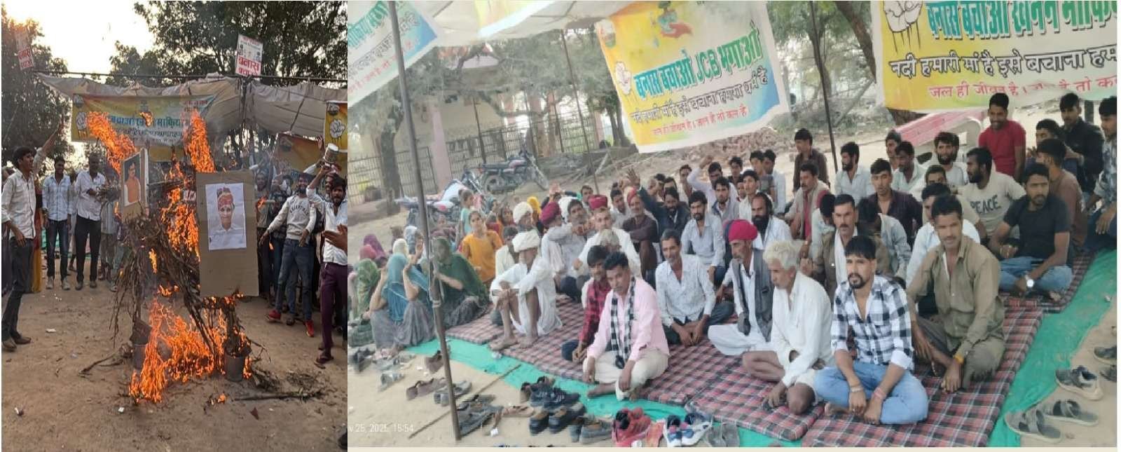 आकोला कस्बे के पास चांदगढ़ गांव में बनास बचाओ संघर्ष समिति का धरना अवैध बजरी खनन रोकने की मांग को लेकर लगातार 30वें दिन भी जारी रहा। मंगलवार को आंदोलन और उग्र हो गया। अवैध खनन पर प्रशासन की चुप्पी से नाराज ग्रामीणों ने मुख्यमंत्री भजनलाल शर्मा और क्षेत्रीय विधायक गोपाललाल खंडेलवाल का पुतला दहन कर विरोध जताया।