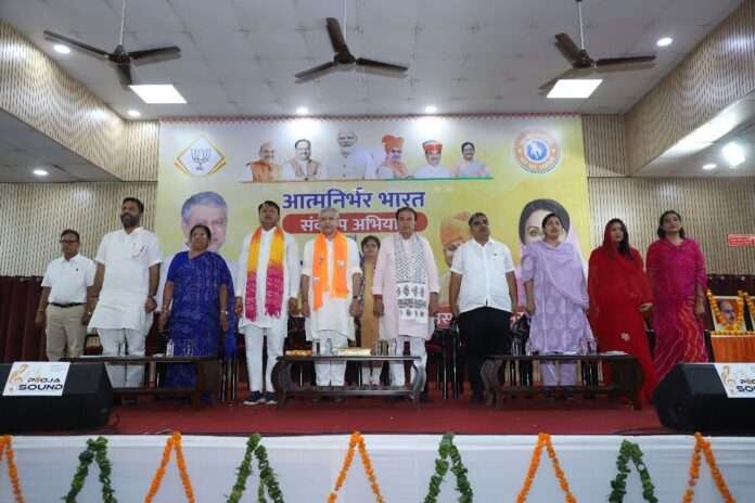जयपुर शहर भाजपा की ओर से दीपावली से पूर्व आयोजित “आत्मनिर्भर भारत एवं संकल्प” अभियान के तहत गुरुवार को आत्मनिर्भर भारत रोजगार उत्सव मनाया गया। इस अवसर पर घुमंतू जाति उत्थान न्यास द्वारा कार्यकुशलता और रुचि के आधार पर चिन्हित विधवा महिलाओं, गरीब और निराश्रित परिवारों को स्वरोजगार के लिए आवश्यक सामग्री वितरित की गई।
