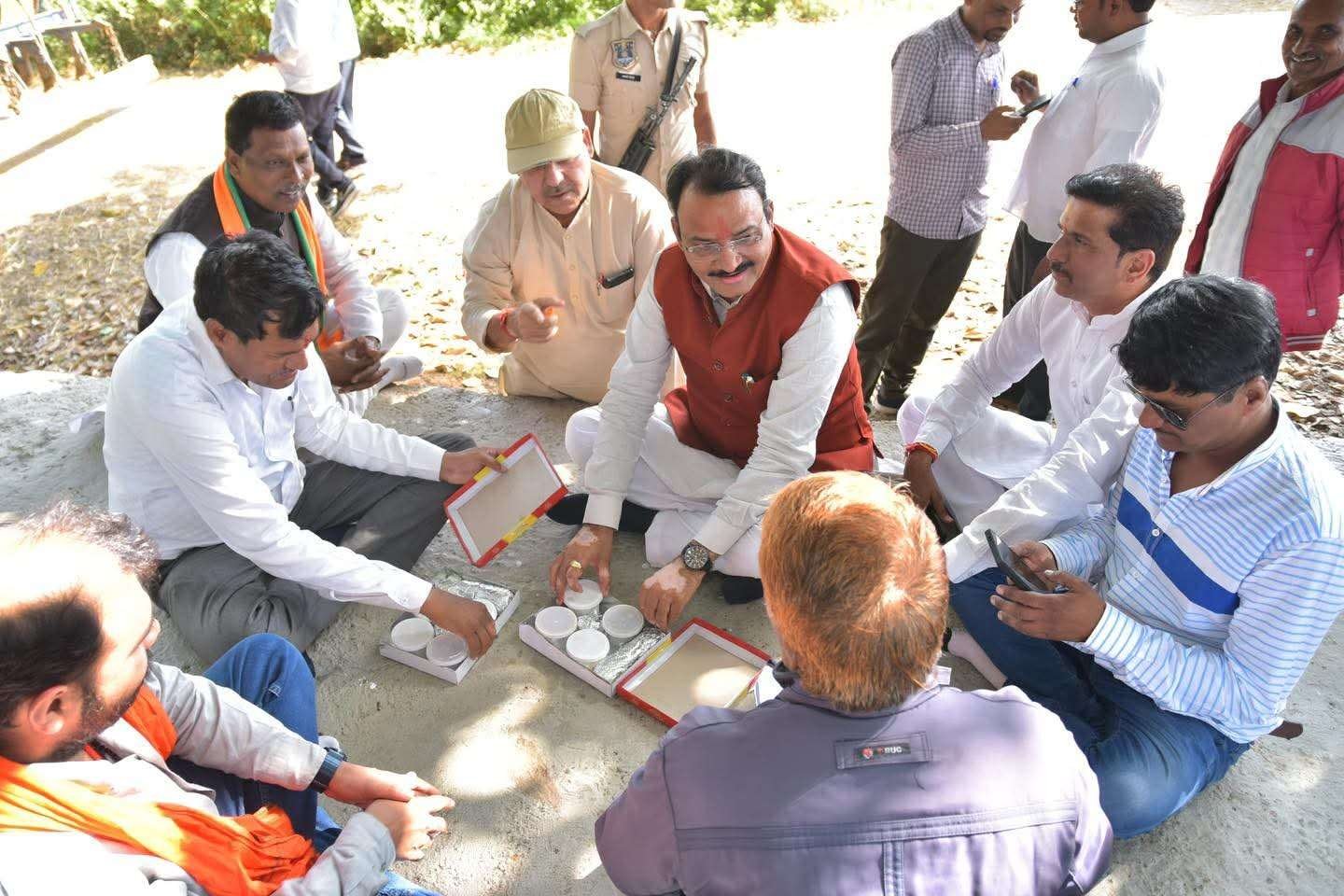अंता ।विधानसभा उपचुनाव के प्रचार के दौरान राजस्थान के उपमुख्यमंत्री डॉ. प्रेमचंद बैरवा का सादगीपूर्ण अंदाज देखने को मिला। प्रचार यात्रा के बीच जब उन्हें भोजन का समय हुआ तो वे किसी विशेष इंतजाम के बजाय भाजपा कार्यकर्ताओं और गांव के लोगों के साथ जमीन पर ही बैठ गए।