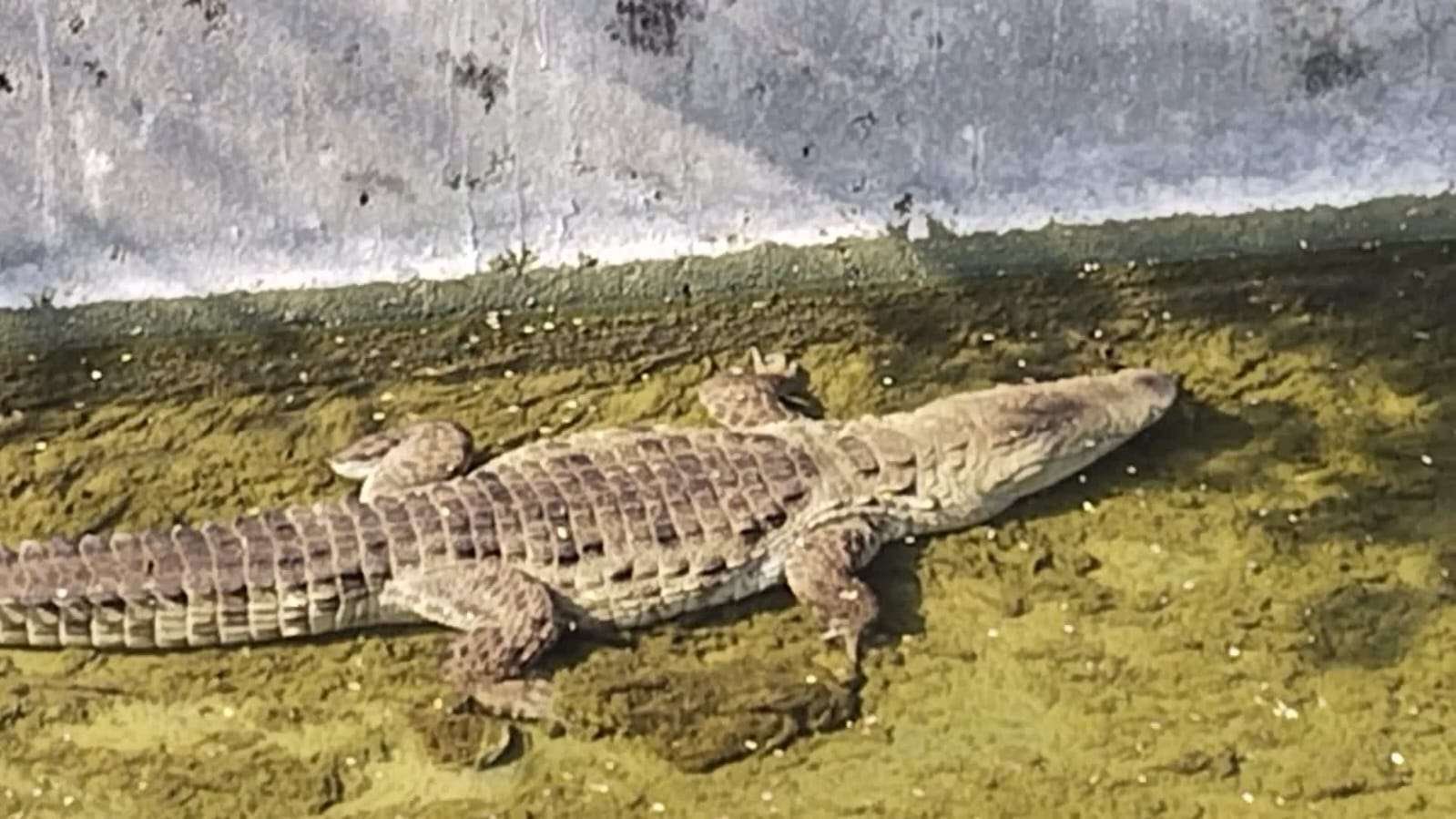 लोगों ने मोबाइल में कैद किया मगरमच्छ का वीडियो, लोगों की चहल-पहल और आवाज सुनकर मगरमच्छ फिर से उतरा पानी में