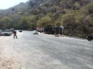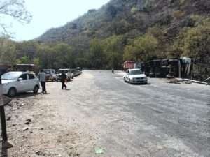 देसूरी घाट में खाद्य सामग्री से भरा ट्रेलर पलटा, खाई में बिखरा सामान