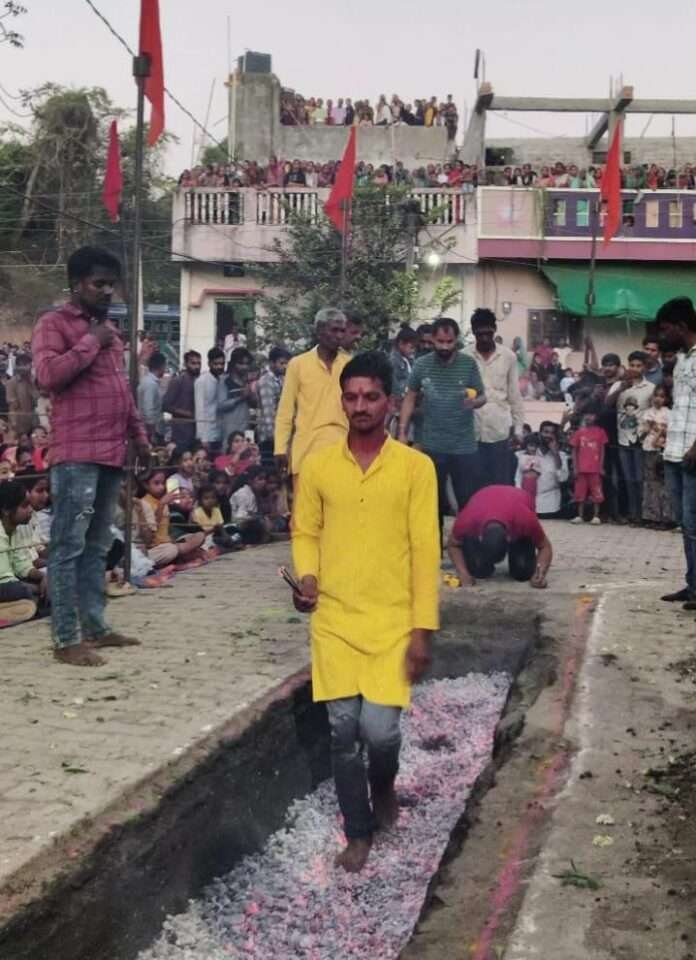 बुधवार को आयोजित कार्यक्रम में करीब 125 महिला, पुरुष और बच्चों ने धधकते अंगारों पर चलकर अपनी आस्था प्रकट की।