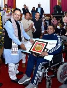 जयपुर । हरीशचन्द्र माथुर लोक प्रशासन संस्थान (ओटीएस) में आयोजित राज्य स्तरीय विशेष योग्यजन पुरस्कार समारोह में मुख्यमंत्री भजनलाल शर्मा ने अंतरराष्ट्रीय दिव्यांगजन दिवस पर उत्कृष्ट कार्य करने वाले दिव्यांगजनों व संस्थाओं को सम्मानित किया।