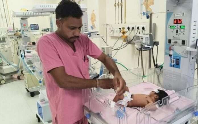झालावाड़। शहर के एसआरजी अस्पताल के पालना गृह में बुधवार सुबह एक महिला नवजात शिशु को छोड़कर चली गई। घटना की जानकारी सुबह करीब 10 बजे अस्पताल प्रशासन को मिली, जिसके बाद स्टाफ ने तुरंत शिशु को सुरक्षित संरक्षण में लेकर नवजात गहन चिकित्सा इकाई (एनआईसीयू) में भर्ती कराया।