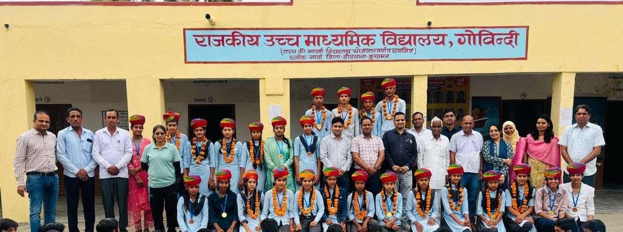 नावा सिटी (मनीष पारीक)। उपखंड क्षेत्र के गोविंदी ग्राम स्थित राजकीय उच्च माध्यमिक विद्यालय में प्रवेश उत्सव कार्यक्रम बड़े उत्साह और हर्षोल्लास के साथ आयोजित किया गया। इस अवसर पर बोर्ड परीक्षाओं में उत्कृष्ट प्रदर्शन करने वाले विद्यार्थियों का भव्य सम्मान किया गया तथा पूरे गांव में जुलूस निकालकर उनका उत्साहवर्धन किया गया।