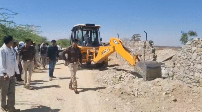 रियांबड़ी/नागौर। हरसोर गांव में शुक्रवार को प्रशासन और पुलिस की संयुक्त टीम ने बड़ी कार्रवाई करते हुए अवैध अतिक्रमण को ध्वस्त कर दिया। यह कार्रवाई अवैध रूप से विस्फोटक सामग्री रखने और बेचने के आरोप में नामजद आरोपी सुलेमान पुत्र करीम खान देशवाली के खिलाफ की गई।