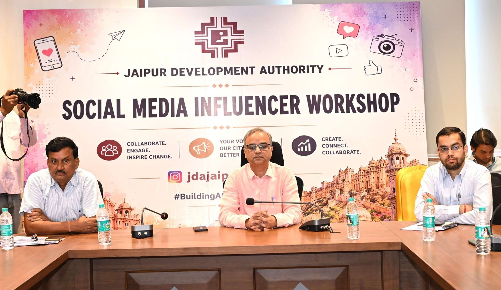 जयपुर विकास प्राधिकरण (जयपुर विकास प्राधिकरण) द्वारा शुक्रवार को राजस्थान इंटरनेशनल सेंटर में ऑनलाइन सेवाओं, नागरिक सुविधाओं, नवाचारों और सुनियोजित विकास योजनाओं पर सोशल मीडिया इन्फ्लुएंसर्स एवं मीडिया प्रतिनिधियों के लिए कार्यशाला आयोजित की गई।