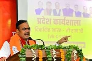 कार्यशाला को संबोधित करते हुए मुख्यमंत्री भजनलाल शर्मा ने कहा कि प्रधानमंत्री नरेंद्र मोदी डॉ. भीमराव अंबेडकर और पं. दीनदयाल उपाध्याय के विचारों के अनुरूप समाज के अंतिम व्यक्ति तक विकास पहुंचा रहे हैं, जबकि कांग्रेस हर योजना में भ्रम फैलाने का काम करती है। उन्होंने कहा कि कांग्रेस को अब “जी रामजी” नाम से भी आपत्ति है, जबकि विकास की दिशा तय हो चुकी है। देश और प्रदेश धीरे-धीरे रामराज्य की ओर अग्रसर हैं।