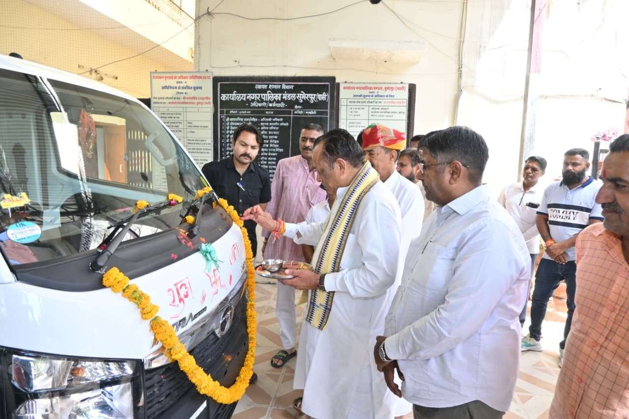 सुमेरपुर। शहर में कचरा संग्रहण व्यवस्था को आधुनिक और प्रभावी बनाने की दिशा में शनिवार को दो नए इलेक्ट्रिक वाहनों को शामिल किया गया। पशुपालन, गोपालन, डेयरी एवं देवस्थान विभाग के कैबिनेट मंत्री एवं स्थानीय विधायक जोराराम कुमावत ने नगरपालिका भवन परिसर में आयोजित कार्यक्रम में इन वाहनों को हरी झंडी दिखाकर रवाना किया।