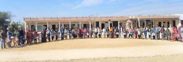 साइकिल मिलने के बाद बालिकाओं के चेहरे खिले और पूरे विद्यालय परिसर में उत्साह का माहौल बन गया।