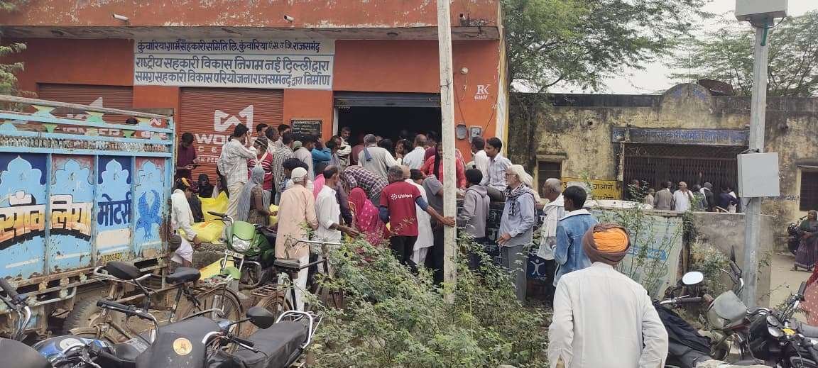 राजसमंद (गौतम शर्मा)। रबी फसल की तैयारी के बीच शनिवार को कुंवारिया सहकारी समिति पर यूरिया एवं नैनो यूरिया लिक्विड के वितरण के दौरान किसानों की भारी भीड़ देखने को मिली। खाद वितरण की सूचना मिलते ही सुबह से ही समिति परिसर में किसानों की कतारें लगनी शुरू हो गईं, जो शाम तक जारी रहीं। दिनभर में समिति परिसर मंडी जैसा नजर आया।