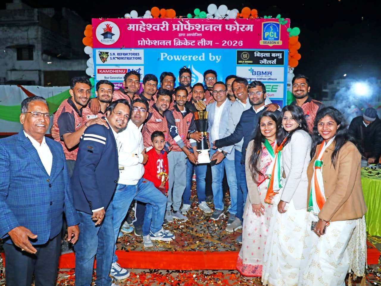 भीलवाड़ा। (पंकज पोरवाल) माहेश्वरी प्रोफेशनल फोरम के तत्वावधान में आयोजित तीन दिवसीय माहेश्वरी प्रोफेशनल क्रिकेट लीग–2026 (सीजन 4) का समापन भव्य एवं उत्साहपूर्ण माहौल में हुआ। फाइनल मुकाबले में एसएन वॉरियर्स ने शानदार प्रदर्शन करते हुए खिताब अपने नाम किया।
