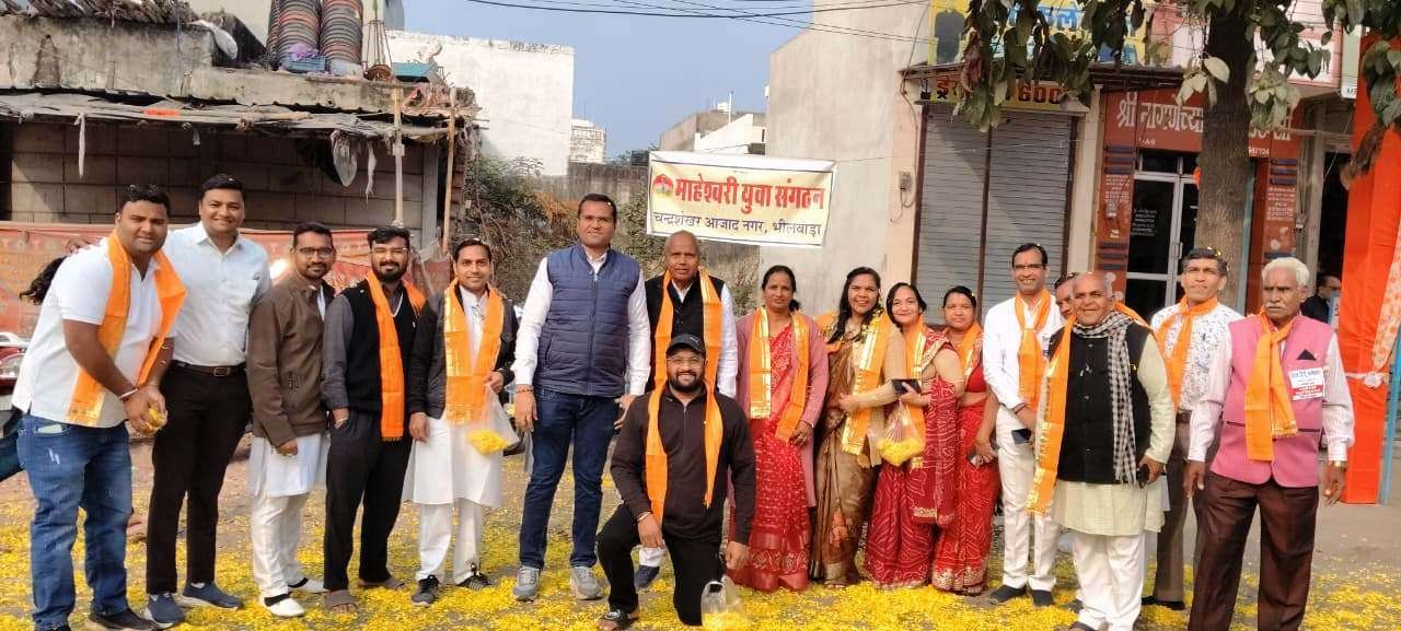 भीलवाड़ा | (पंकज पोरवाल) चंद्रशेखर आजाद नगर माहेश्वरी युवा संगठन ने चंद्रशेखर आजाद नगर बस्ती में आयोजित विराट हिंदू सम्मेलन की शोभा यात्रा का भव्य स्वागत किया। इस अवसर पर पदाधिकारियों और सदस्यों ने पुष्प वर्षा कर शोभा यात्रा का अभिनंदन किया और हिंदू समाज की एकता, अखंडता एवं सांस्कृतिक मूल्यों को सुदृढ़ करने का संदेश दिया।