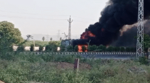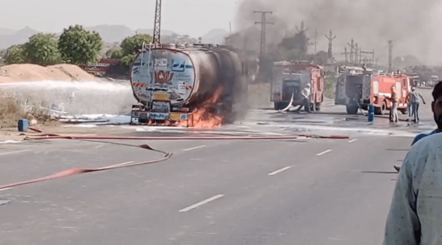 मांगलियावास में केमिकल टैंकर में भीषण आग