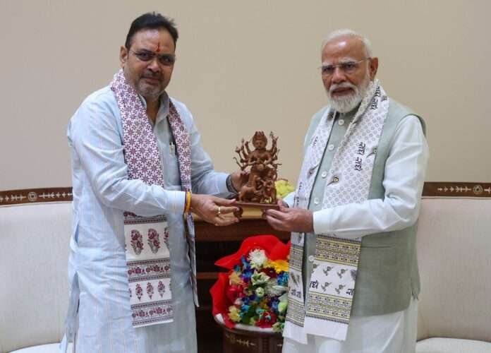 नई दिल्ली/जयपुर: मुख्यमंत्री भजनलाल शर्मा ने बुधवार को नई दिल्ली स्थित संसद भवन में प्रधानमंत्री नरेंद्र मोदी से शिष्टाचार मुलाकात की। इस अवसर पर मुख्यमंत्री ने प्रधानमंत्री को नवरात्र पर्व की शुभकामनाएं दीं और राजस्थान के शिल्पकार द्वारा चंदन की लकड़ी से निर्मित मां दुर्गा की मूर्ति भेंट की।
