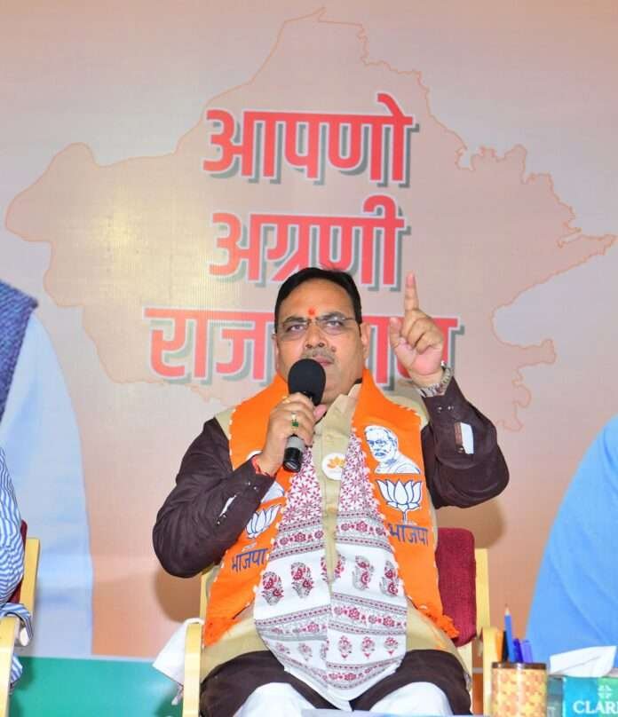 जयपुर । मुख्यमंत्री भजनलाल शर्मा ने रविवार को मुख्यमंत्री निवास पर विभिन्न जनप्रतिनिधियों और भाजपा पदाधिकारियों के साथ महत्वपूर्ण बैठक की। बैठक में पूर्व जिलाध्यक्ष, पूर्व विधायक, मेयर, प्रधान, चेयरमैन, डेयरी चेयरमैन, कॉपरेटिव सोसायटी अध्यक्ष और विधायक प्रत्याशी शामिल हुए। चर्चा का मुख्य विषय आगामी निकाय एवं पंचायतीराज चुनावों की रणनीति और संगठनात्मक जिम्मेदारियों का निर्धारण रहा।