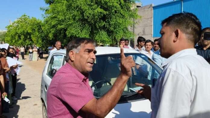 नागौर। नागौर में RPSC की SI भर्ती परीक्षा शुरू होने से पहले ही अव्यवस्था देखने को मिली। शहर के कांकरिया स्कूल परीक्षा केंद्र पर मोबाइल और वाहनों की एंट्री को लेकर पुलिस और स्कूल स्टाफ के बीच तीखा विवाद हो गया।