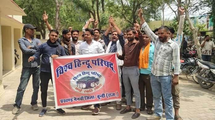 नैनवा (बूंदी)। शुक्रवार को विश्व हिन्दू परिषद एवं बजरंग दल प्रखंड नैनवा के तत्वावधान में विभिन्न मांगों को लेकर जोरदार प्रदर्शन किया गया।