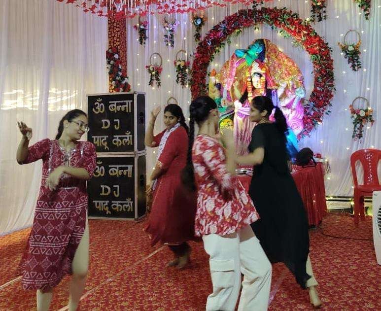 शाम को मंदिर प्रांगण में महिलाओं और युवतियों ने रंग-बिरंगे परिधानों में गरबा-डांडिया प्रस्तुत कर माहौल को भक्तिमय बना दिया। तालियों की थाप और संगीत की लय पर हुए समूह नृत्यों ने श्रद्धालुओं को मंत्रमुग्ध कर दिया। मंदिर परिसर को झालरों और रोशनी से सजाया गया था, और देर रात तक सांस्कृतिक कार्यक्रम जारी रहे।