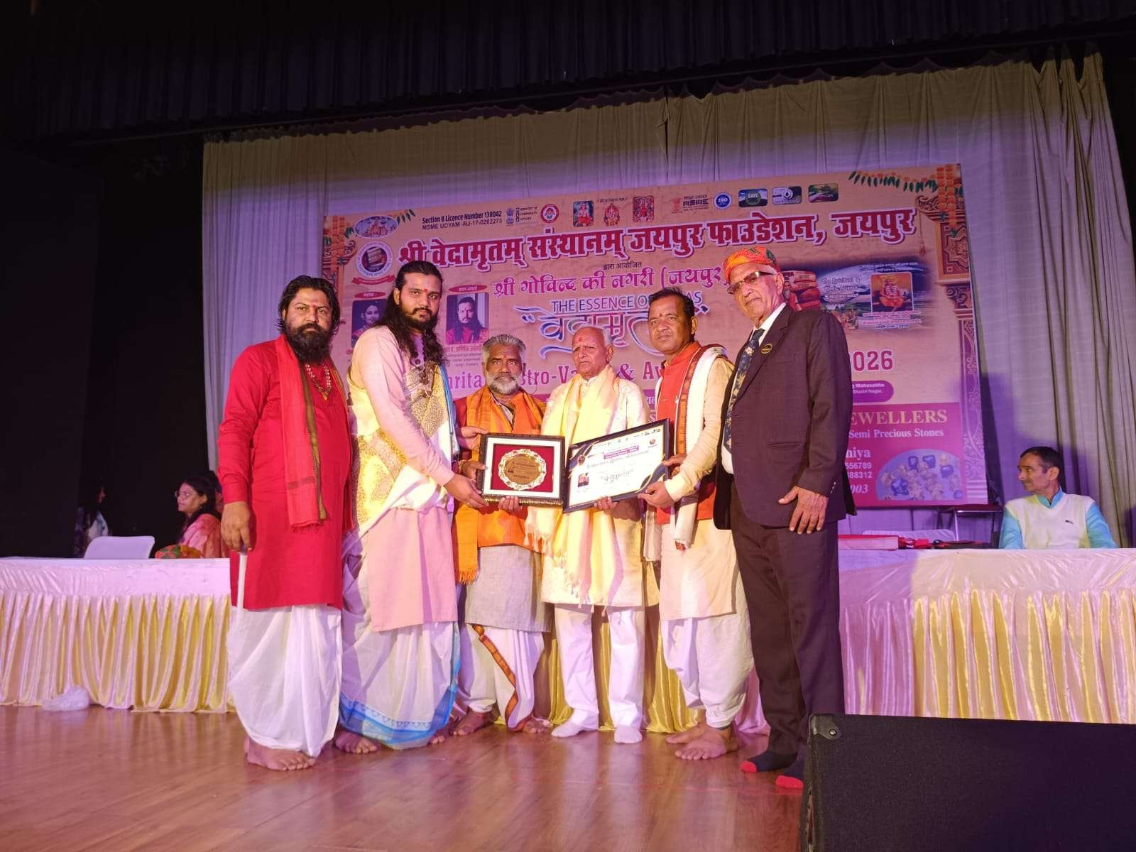 श्री वेदामृतम संस्थान जयपुर फाउंडेशन द्वारा आयोजित समारोह में पंडित शर्मा को ज्योतिष विज्ञान, भूमि वास्तु दोष निवारण, हस्तरेखा शास्त्र, अंकशास्त्र, आयुर्वेद और वैदिक संस्कृति के क्षेत्र में उनके जीवनभर के विशिष्ट योगदान और निस्वार्थ समाज सेवा के लिए यह सम्मान प्रदान किया गया।