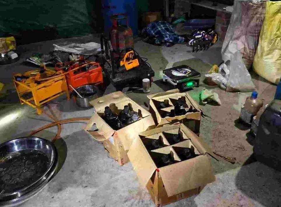 भारी मात्रा में केमिकल व उपकरण जब्त, आरोपी फरार