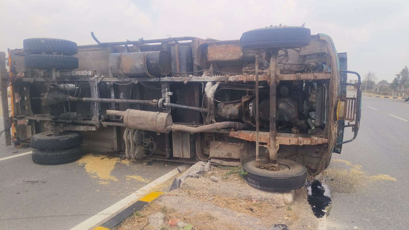 सिरोही/पिंडवाड़ा | पिंडवाड़ा थाना क्षेत्र के झाड़ोली इलाके में रिलायंस पेट्रोल पंप के पास उस समय अफरा-तफरी मच गई जब भूसे से भरा एक ट्रक अचानक पलट गया।