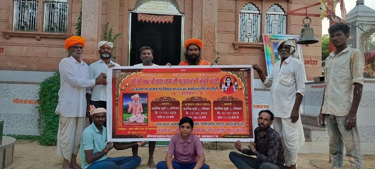 पादूकलां। कस्बे के राईको की ढाणी स्थित जोगेश्वर धाम में पूर्व महंत योगी कैलाशनाथ जी महाराज की चतुर्थ पुण्यतिथि 12 अक्टूबर को श्रद्धा और भक्ति के साथ मनाई जाएगी। इस अवसर पर धार्मिक कार्यक्रमों का आयोजन होगा, जिसमें प्रदेशभर से साधु-संत, भक्तगण और ग्रामीण श्रद्धालु जुटेंगे।