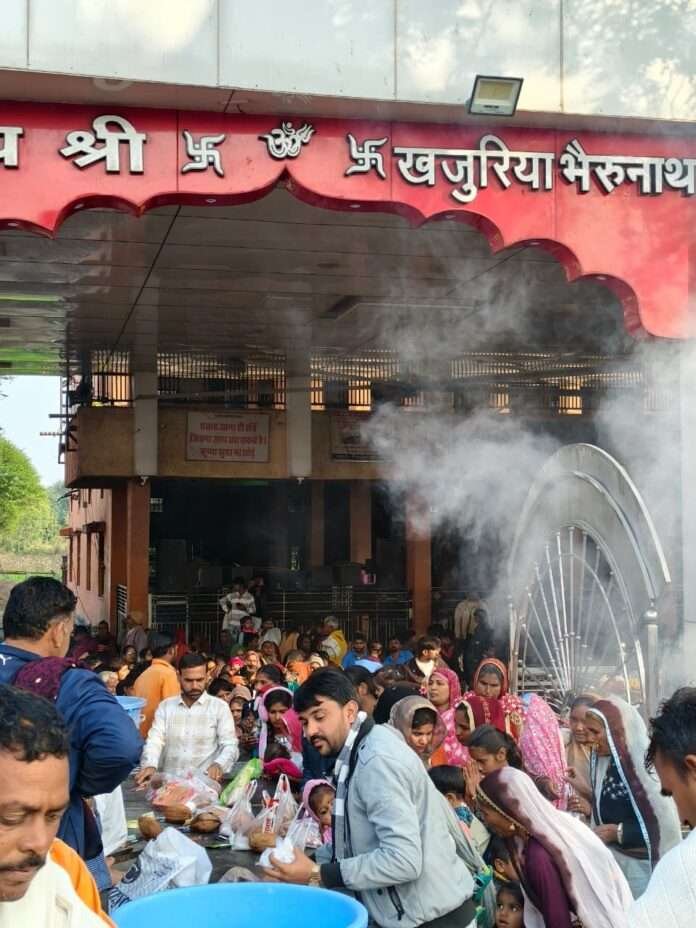 राजसमंद। राजसमंद-भीलवाड़ा जिले की सीमा पर स्थित प्रभु श्री खजुरिया श्याम भैरुनाथ के दरबार में शनिवार को भक्तों की भारी भीड़ उमड़ी। मंदिर परिसर से चारों दिशाओं के रास्तों पर श्रद्धालुओं का तांता लगा रहा, कोई पैदल तो कोई दुपहिया या चार-पहिया वाहन से दर्शन के लिए पहुंचा।