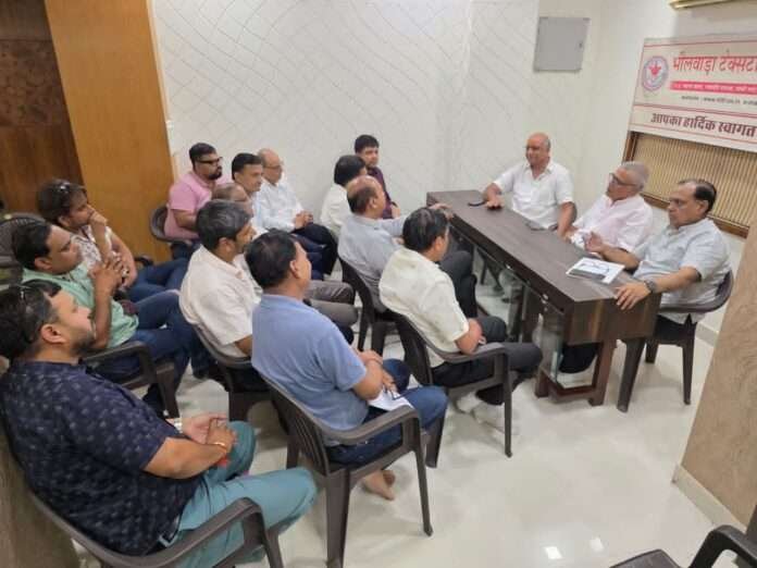 भीलवाड़ा के कपड़ा व्यापारी और वस्त्र निर्माता हाल ही में प्रोसेस हाउसों द्वारा लगाई गई 2 प्रतिशत अतिरिक्त लेवी का विरोध कर रहे हैं। इस मुद्दे पर भीलवाड़ा टेक्सटाइल ट्रेड फेडरेशन के कार्यालय में एक अहम बैठक आयोजित की गई, जिसकी अध्यक्षता फेडरेशन के संस्थापक सदस्य एवं कपड़ा व्यापारियों की समस्या समाधान समिति के समन्वयक श्याम चांडक, रामेश्वर काबरा और प्रेम स्वरूप गर्ग ने की।