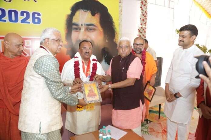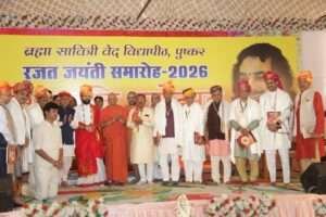 अजमेर। विधानसभा अध्यक्ष वासुदेव देवनानी एवं केंद्रीय कृषि एवं किसान कल्याण राज्य मंत्री भागीरथ चौधरी ने तीर्थराज पुष्कर में आयोजित श्री ब्रह्मा सावित्री वेद विद्यापीठ आश्रम के रजत जयंती समारोह–2026 में सहभागिता की। इस अवसर पर दोनों नेताओं ने परम् विभूषित राष्ट्र संत गोविंद देव गिरी जी महाराज का आशीर्वाद प्राप्त किया।