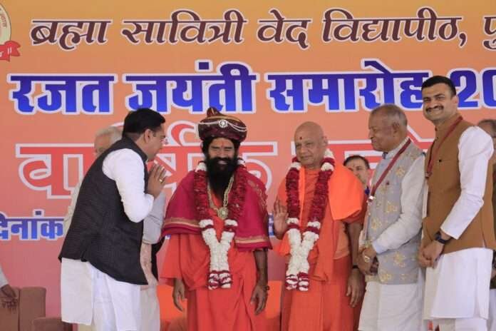 अजमेर। जल संसाधन मंत्री एवं पुष्कर विधायक सुरेश सिंह रावत ने तीर्थराज पुष्कर में श्री ब्रह्मा सावित्री वेद विद्यापीठ आश्रम के रजत जयंती समारोह–2026 में सहभागिता की। इस अवसर पर राष्ट्र संत गोविंद देव गिरी जी महाराज एवं योगगुरु बाबा रामदेव का पावन सानिध्य प्राप्त हुआ।