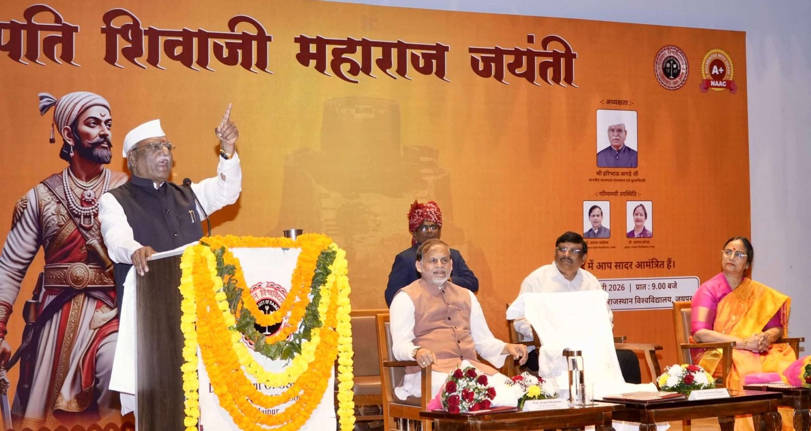 इस अवसर पर केंद्रीय विश्वविद्यालय राजस्थान के कुलगुरु आनंद राव भाले ने शिवाजी महाराज के युद्ध कौशल और वीरता पर मुख्य वक्तव्य दिया। राजस्थान विश्वविद्यालय की कुलगुरु अल्पना कटेजा ने स्वागत भाषण दिया।