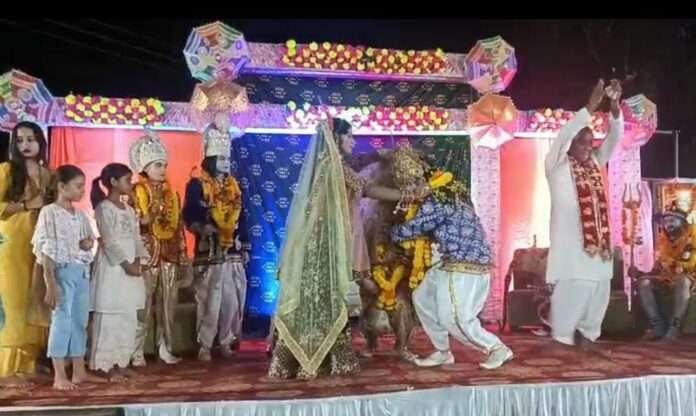 विवाह प्रसंग में वह क्षण आया जब श्रीराम ने तोरण के नीचे झुकने से इनकार किया। तभी माता सीता ने मुस्कुराते हुए लक्ष्मण की ओर संकेत किया। लक्ष्मण तुरंत प्रभु के चरणों में झुके और जैसे ही श्रीराम उन्हें उठाने लगे, माता सीता ने वरमाला डाल दी। यह अलौकिक दृश्य जय श्रीराम के जयघोष और तालियों से गूंज उठा।