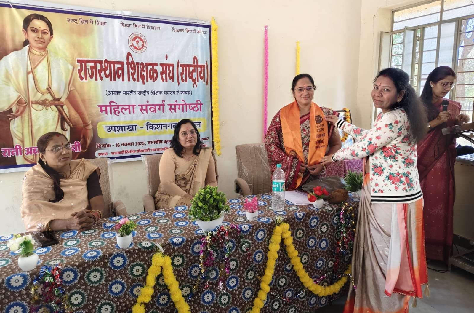 राजकीय मारवाड़ी रिलीफ सोसायटी उच्च माध्यमिक विद्यालय, किशनगढ़ रेनवाल में रविवार को राजस्थान शिक्षक संघ (राष्ट्रीय) की उपशाखा द्वारा महिला संवर्ग संगोष्ठी का आयोजन किया गया। सुबह 10 बजे शुरू हुई इस संगोष्ठी के प्रथम सत्र में मुख्य वक्ता मीनाक्षी शर्मा ने रानी अब्बक्का के जीवन चरित्र पर प्रकाश डालते हुए कहा कि “रानी अब्बक्का भारत की प्रथम महिला स्वतंत्रता सेनानी थीं।”