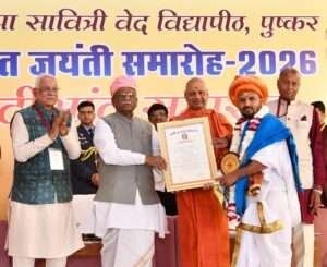 अजमेर (नितिन मेहरा)। तीर्थराज पुष्कर स्थित ब्रह्म सावित्री वेद विद्यापीठ के तीन दिवसीय रजत जयंती समारोह एवं वार्षिक महाशिवरात्रि महोत्सव का भव्य शुभारंभ हुआ। दीक्षांत समारोह में राजस्थान के राज्यपाल हरिभाऊ बागड़े मुख्य अतिथि के रूप में शामिल हुए। विद्यापीठ पहुंचने पर उन्हें गार्ड ऑफ ऑनर दिया गया तथा उन्होंने मृत्युंजय महादेव के दर्शन कर विधिवत पूजन-अर्चन किया।