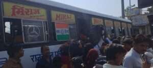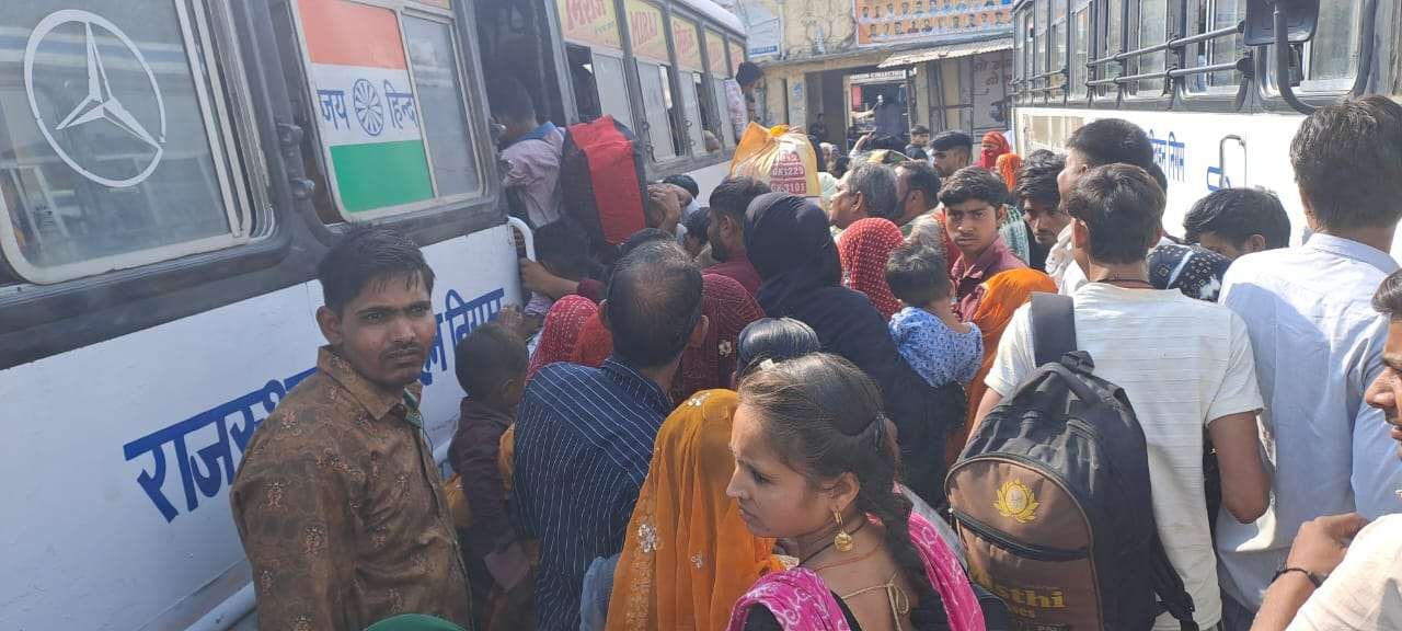 सबसे अधिक भीड़ कोटा और जयपुर मार्ग की बसों में देखने को मिली।