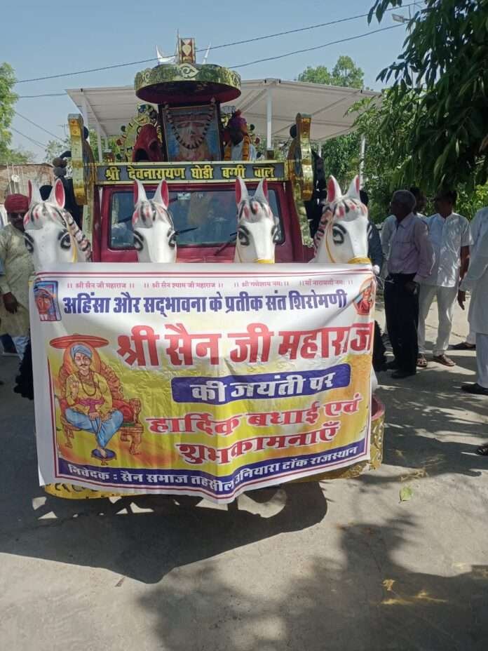 उनियारा: कस्बे में संत शिरोमणि सेन जी महाराज के 726वें जन्मोत्सव के अवसर पर सेन समाज उत्थान समिति तहसील उनियारा के तत्वावधान में भव्य शोभायात्रा का आयोजन किया गया।