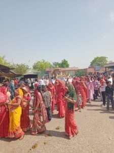 शोभायात्रा से पूर्व दो घोड़ियों और एक बग्घी रथ की बोली लगाई गई। घोड़ियों की बोली में शंकर जी सेन दोबढ़िया व छोटू जी सेन पलाई तथा बग्घी रथ में लड्डू जी सेन दोबढ़िया अपने परिवार सहित विराजमान रहे।