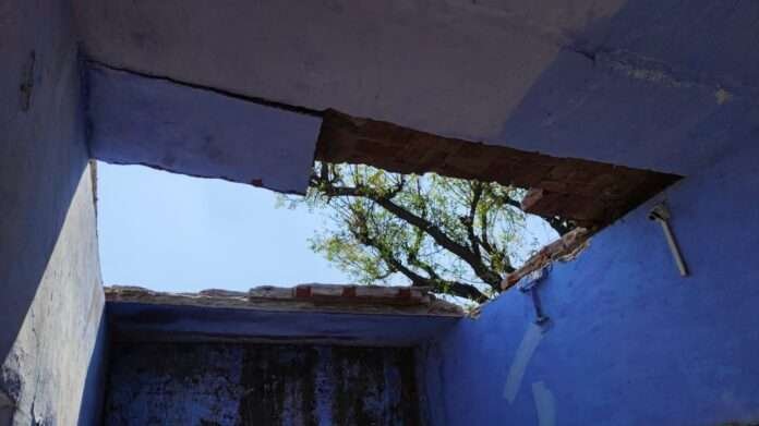 सरकारी स्कूल के बरामदे की पट्टी गिरी, शिक्षकों की सतर्कता से टला बड़ा हादसा