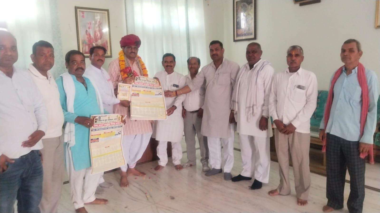 श्री सत्यनारायण मोहल्ला आलनपुर के तत्वावधान में 19 अप्रैल (आखातीज) को आयोजित होने वाले सैनी-माली सामूहिक विवाह सम्मेलन के पोस्टर का विमोचन राजस्थान सरकार के पूर्व कृषि मंत्री डॉ. प्रभु लाल सैनी द्वारा किया गया।